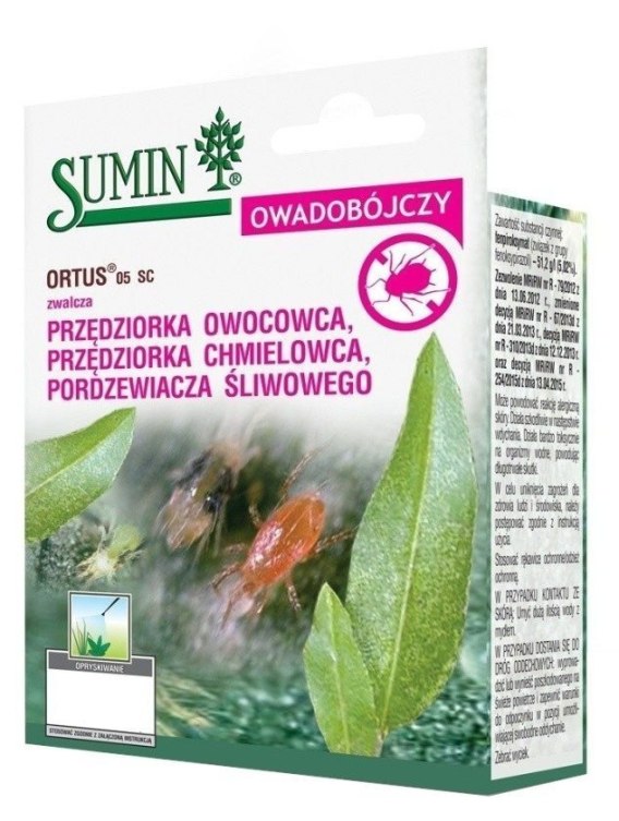 ORTUS 05 SC jest środkiem przędziorkobójczym w formie koncentratu w postaci stężonej zawiesiny do rozcieńczania wodą, o działaniu kontaktowym i żołądkowym, przeznaczony do zwalczania przędziorków i szpecieli w uprawach jabłoni, gruszy, śliwy, agrestu, maliny, porzeczki białej, porzeczki czerwonej, porzeczki czarnej, truskawki, winorośli, uprawianych pod osłonami: cukinii, oberżyny, papryki, pomidora, ogórka, uprawianych w gruncie i pod osłonami roślin ozdobnych. Zwalcza wszystkie ruchome stadia rozwojowe przędziorków. Na roślinie działa powierzchniowo. Środek Ortus 05 SC stosowany jest przy użyciu opryskiwaczy ręcznych.