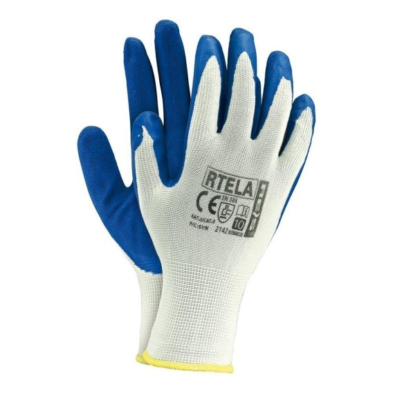 Rękawice ochronne wykonane z poliestru, powlekane latexem.