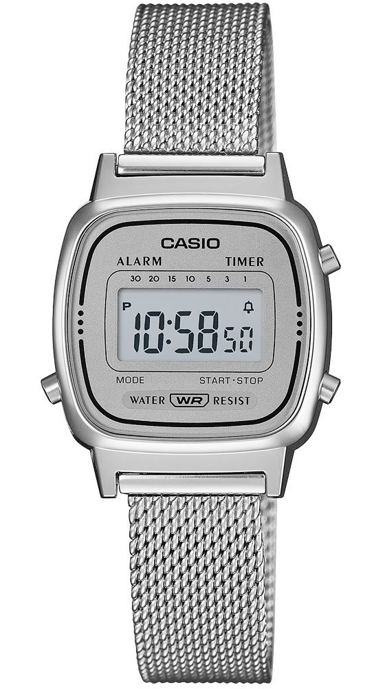 Cyfrowy zegarek dla miłośniczek mody, które cenią sobie indywidualny styl, jednocześnie pozostając na bieżąco z najnowszymi trendami. Jego delikatna, zaokrąglona koperta otoczona metalową bransoletą mesh przywołuje na myśl klasykę lat 70., dodając nuty retro do każdej stylizacji. Dzięki wbudowanemu stoperowi, minutnikowi i alarmowi, ten zegarek to nie tylko ozdoba, ale i praktyczny dodatek dla kobiet ceniących funkcjonalność w pięknej oprawie. Jego delikatne przyciski dają poczucie kontroli nad czasem, a lekka konstrukcja sprawia, że niemal stapia się ze skórą, towarzysząc Ci w każdej chwili dnia.