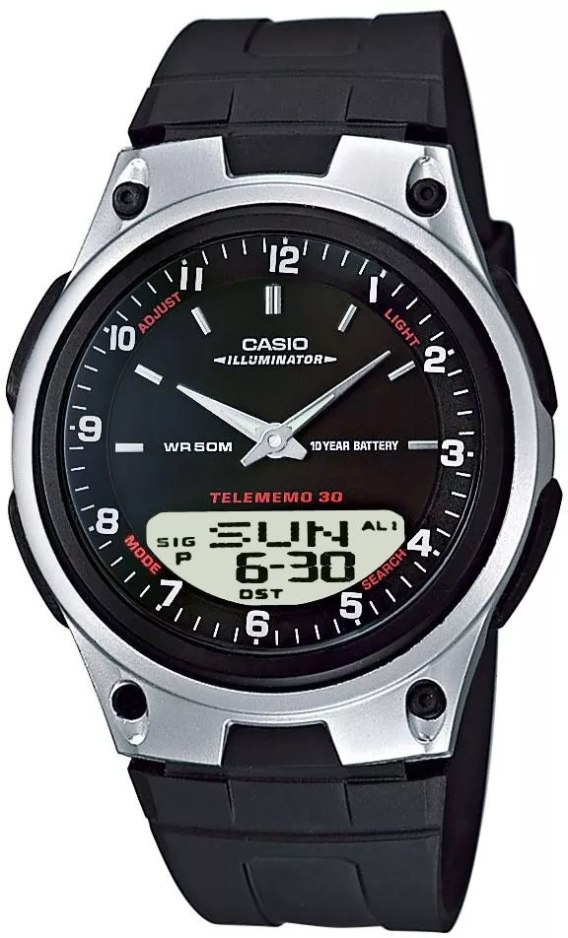 Zegarek Casio AW-80-1AVDF oferuje funkcje takie jak podwójny wyświetlacz (analogowy i cyfrowy), Telememo 30 do zapisywania kontaktów, alarmy, stoper, timer oraz możliwość śledzenia czasu w 30 strefach czasowych. Dodatkowo posiada wodoszczelność WR50M, baterię o żywotności do 10 lat oraz podświetlenie Illuminator do odczytu w ciemności.
