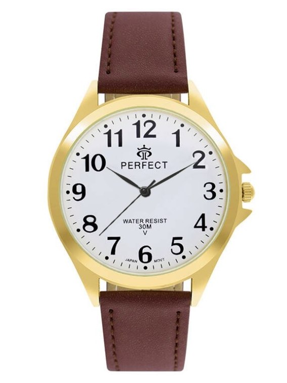 Skórzany pasek tego zegarka to kwintesencja klasy i wygody. Wykonany z najwyższej jakości materiału, komfortowo dopasowuje się do nadgarstka, oferując nie tylko trwałość, ale też elegancki wygląd. Jego miękkość zapewnia komfort noszenia na co dzień, a perfekcyjne wykończenie podkreśla charakterystyczny styl marki Perfect.